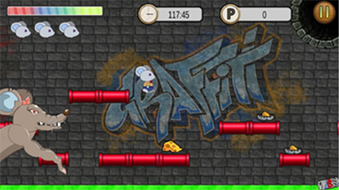 <도망쳐! 톰>의 필드는 톰이 밟고 지나갈 수 있는 파이프가 3레인으로 무작위로 배치되어 있으며 터치를 통해 점프한다.